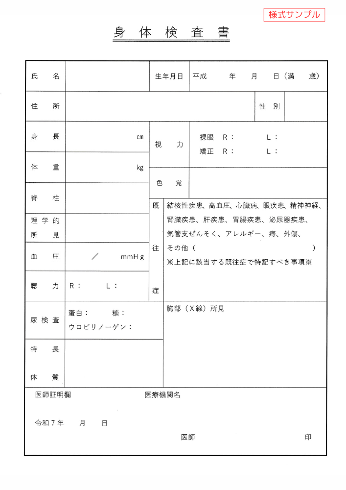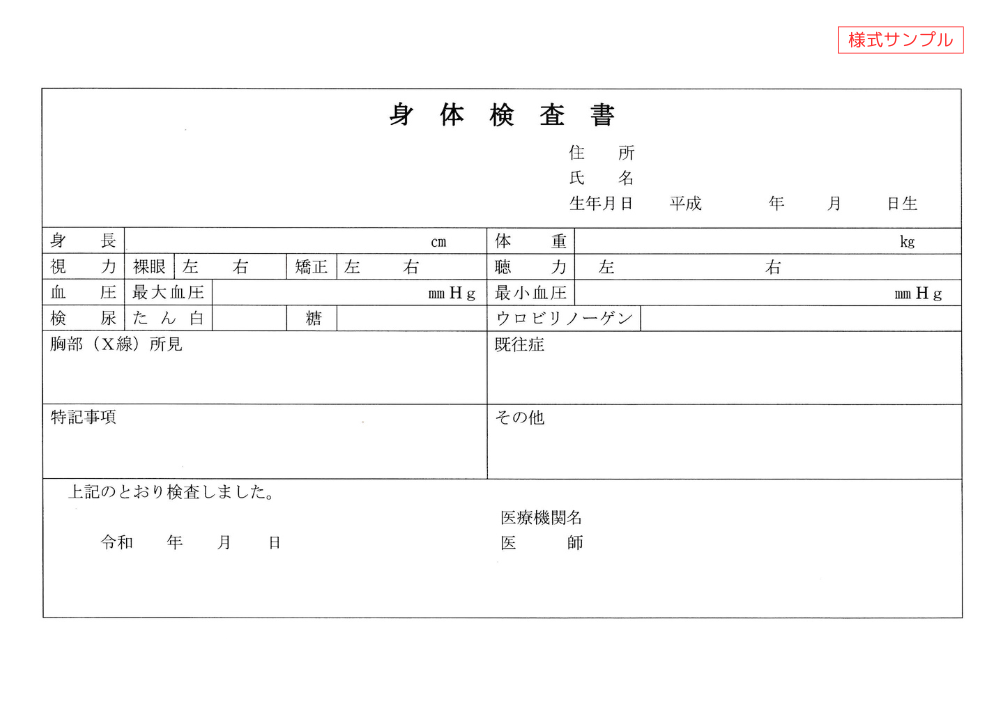 身体検査書(健康診断書)に一般的に必要となる項目は下記のとおりです。